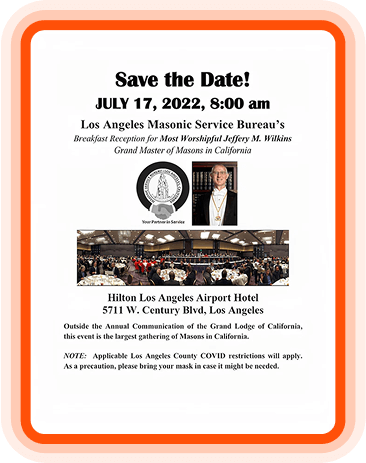 Tickets are $350 for a table of ten. Make checks out to Los Angeles Masonic Service Bureau mail to 16800 Devonshire St,Suite No. 101, Granada Hills, CA 91344.Questions,